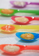 In questo caso non si può applicare il concetto di "numero di porzioni", come accade per l'adulto, perché le quantità di cibo adatte per ciascun bambino sono estremamente variabili e soprattutto non è possibile stabilirle a priori. Vengono dunque fornite quantità indicative, a partire dalle quali si potrà realizzare con semplicità un menu per il divezzamento che soddisfi le richieste nutrizionali di ciascun bambino.